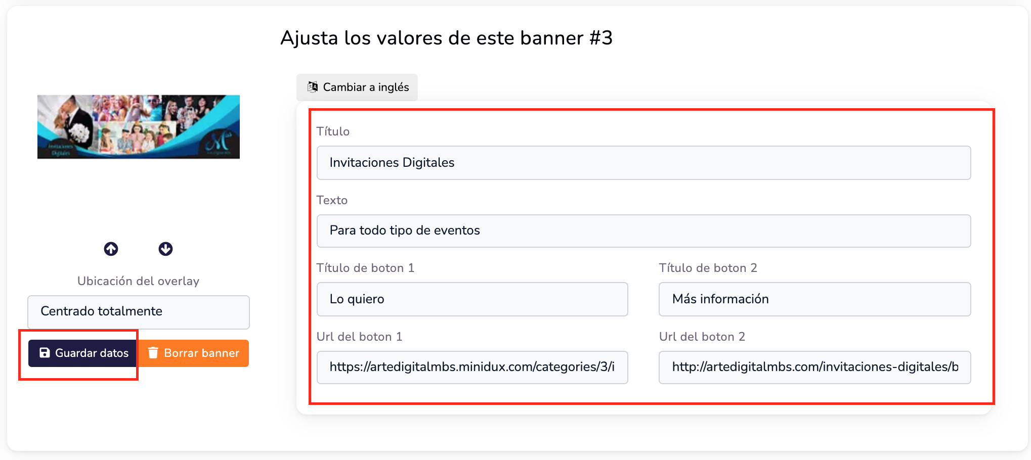 Para subir y modificar los banners debe de seguir las indicaciones de las imágenes