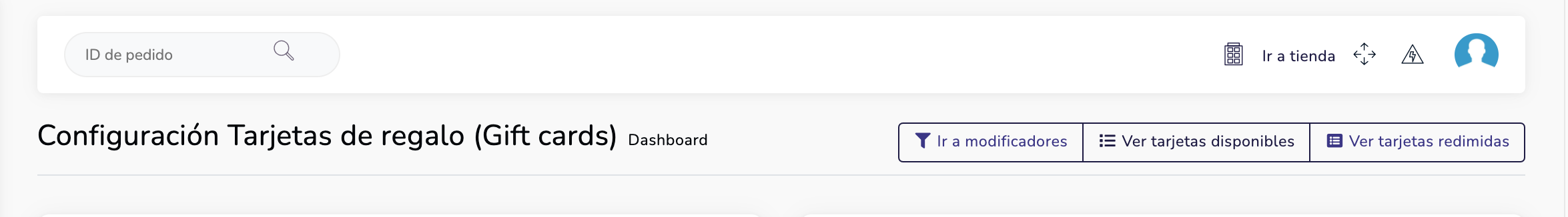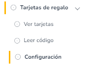 Ahora vas a encontrar un menú interno de Tarjetas de Regalo
